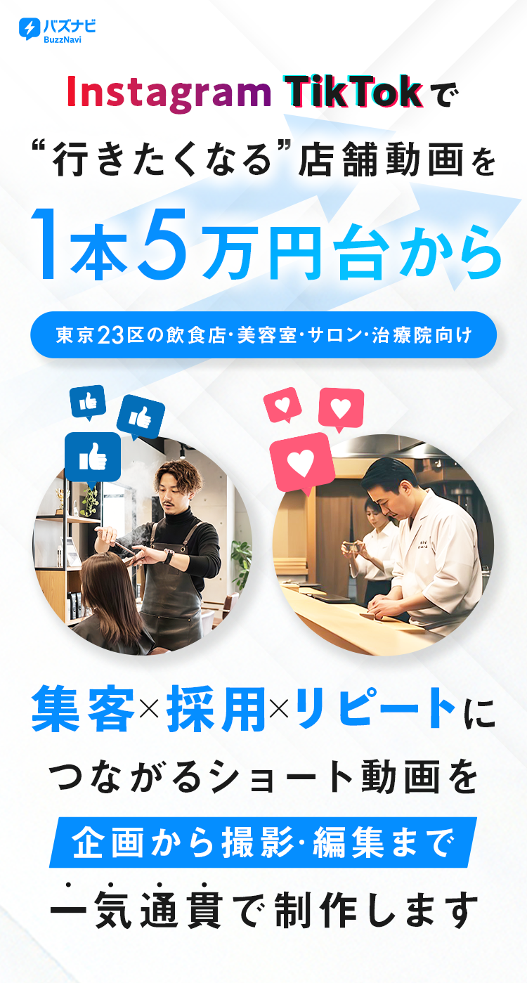 バズナビは、客単価・エリア・営業時間などをヒアリングし、“予約・来店・応募”を増やすための構成と撮影プランを設計。